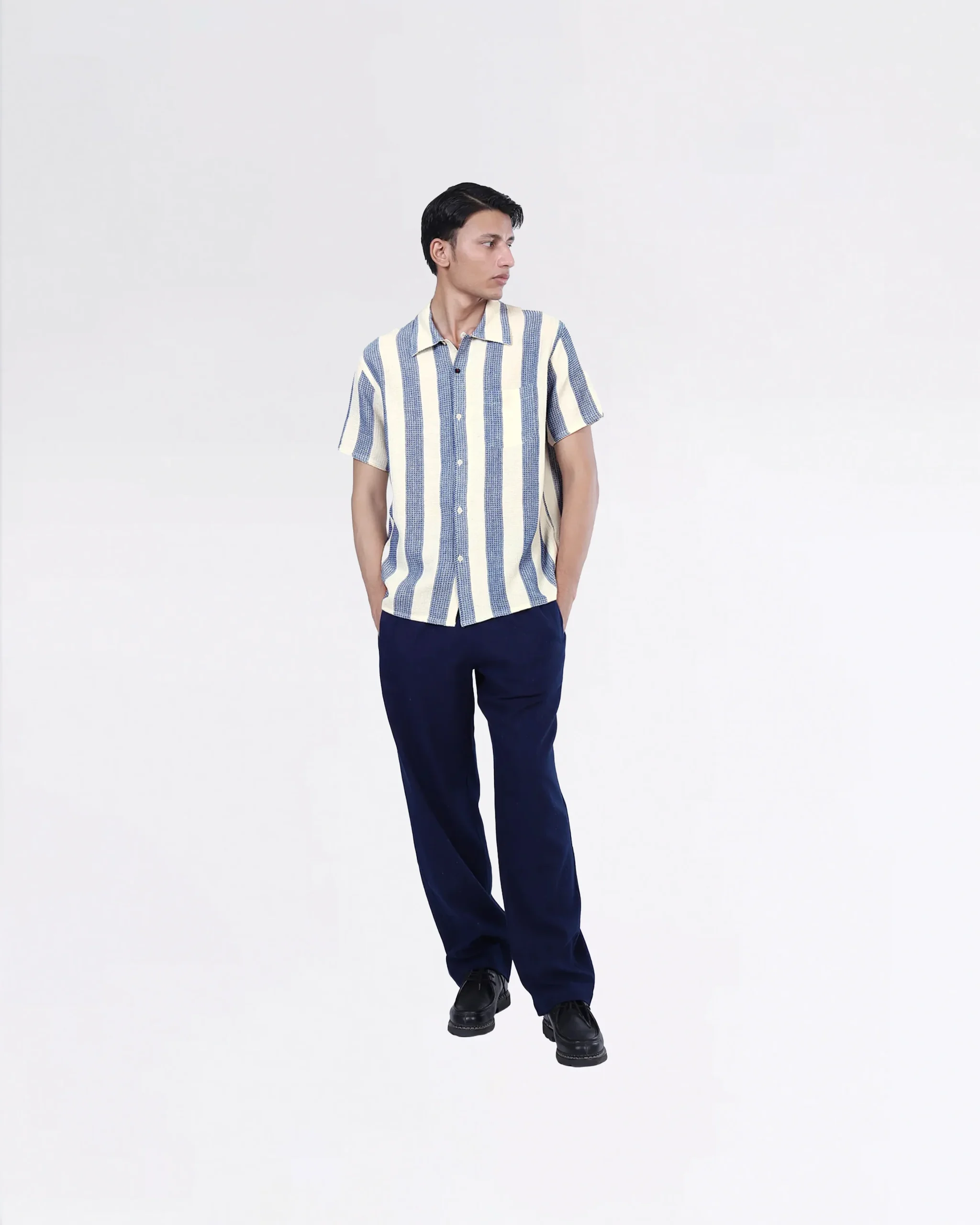 DESCRIPTION : Le tissu utilisé pour ce vêtement a été tissé à la main par un maître tisserand, souvent avec des fils teints naturellement. De légères imperfections et défauts sont caractéristiques du tissu en raison du processus artisanal. COMPOSITION : 100 % Coton tissé à la main avec des teintures naturelles Coupe Boxy fit Boutons […]
