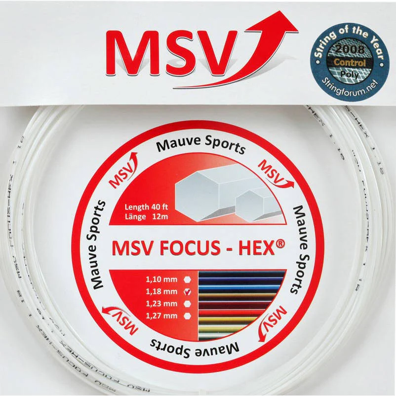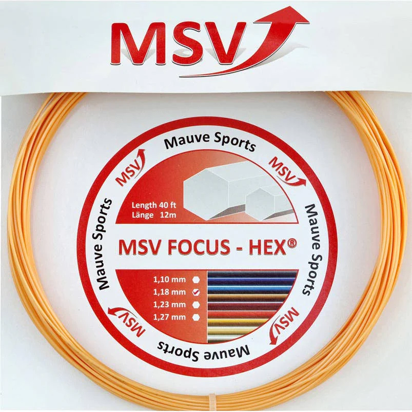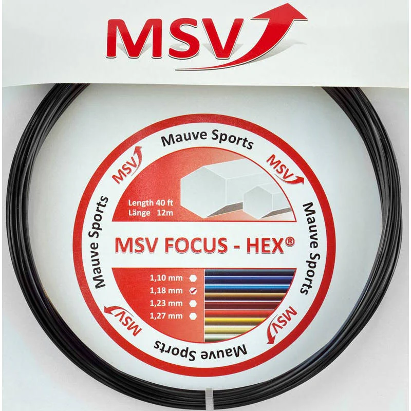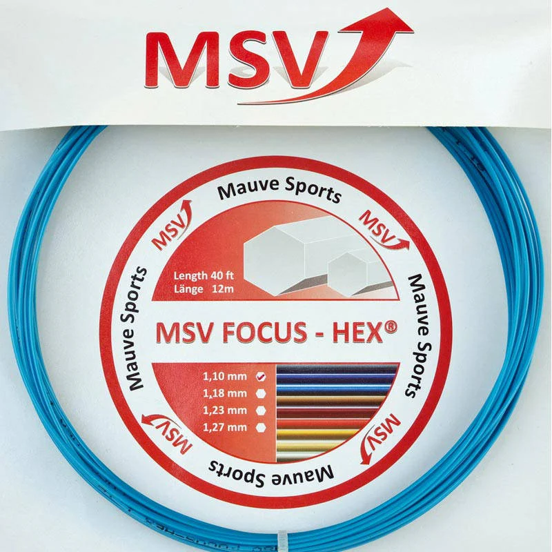 Le cordage MSV Focus Hex est un cordage co-polyester monofilament au profil hexagonal. C’est un cordage qui favorise énormément la prise d’effets. Très similaire en terme de caractéristiques aux deux cordages noirs les plus connus du grand public que sont le RPM Blast 1,25mm de chez Babolat et le Black Code 1.24mm de chez Tecnifibre, le MSV 1,23mm a été crée avant les RPM Blast et Black Code, et pour beaucoup de joueurs, il n’a jamais été égalé notamment en terme de faculté à donner de l’effet, de tenue de tension au fil du temps, ou encore en terme de durée de vie de performance. La couleur noire est la première couleur créee et c’est aussi la plus appréciée des joueurs. Le Foucs Hex a ensuite été décliné en une multitude de couleurs. l’ajout de pigments / peinture au cordage à son rôle aussi minime soit-il dans la performance du cordage.