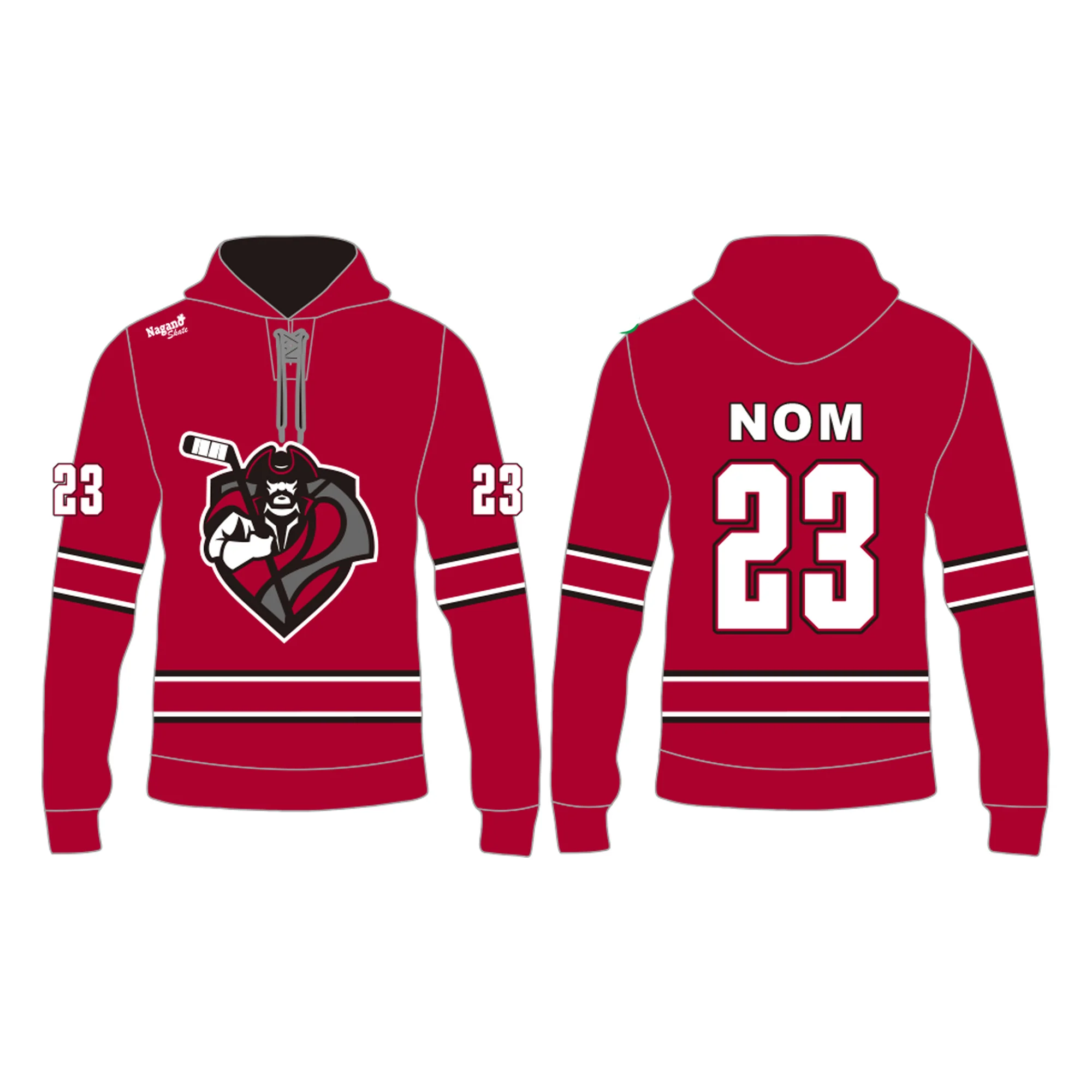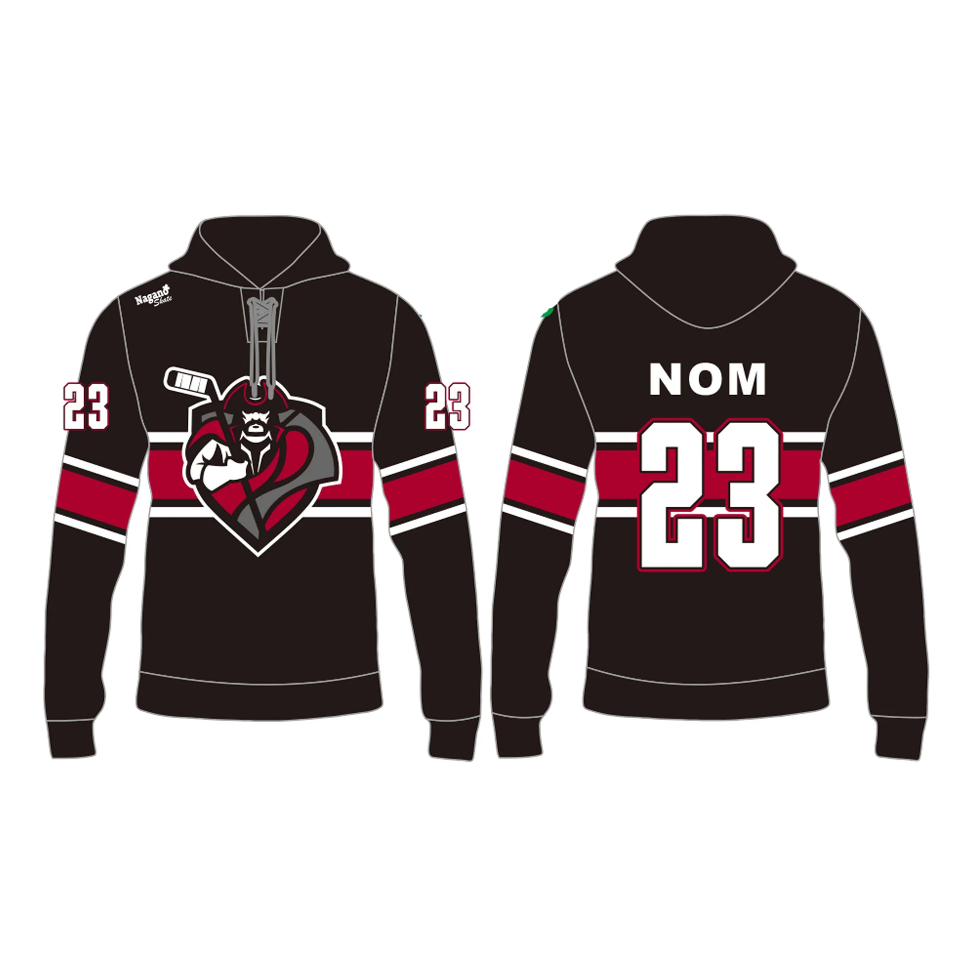 Coton ouaté 100 % polyester avec logo, numéro et nom d’inclu dans le prix. Modèle Hockey Nagano Skate. Ultra confortable et parfait pour la fraicheur des arénas!