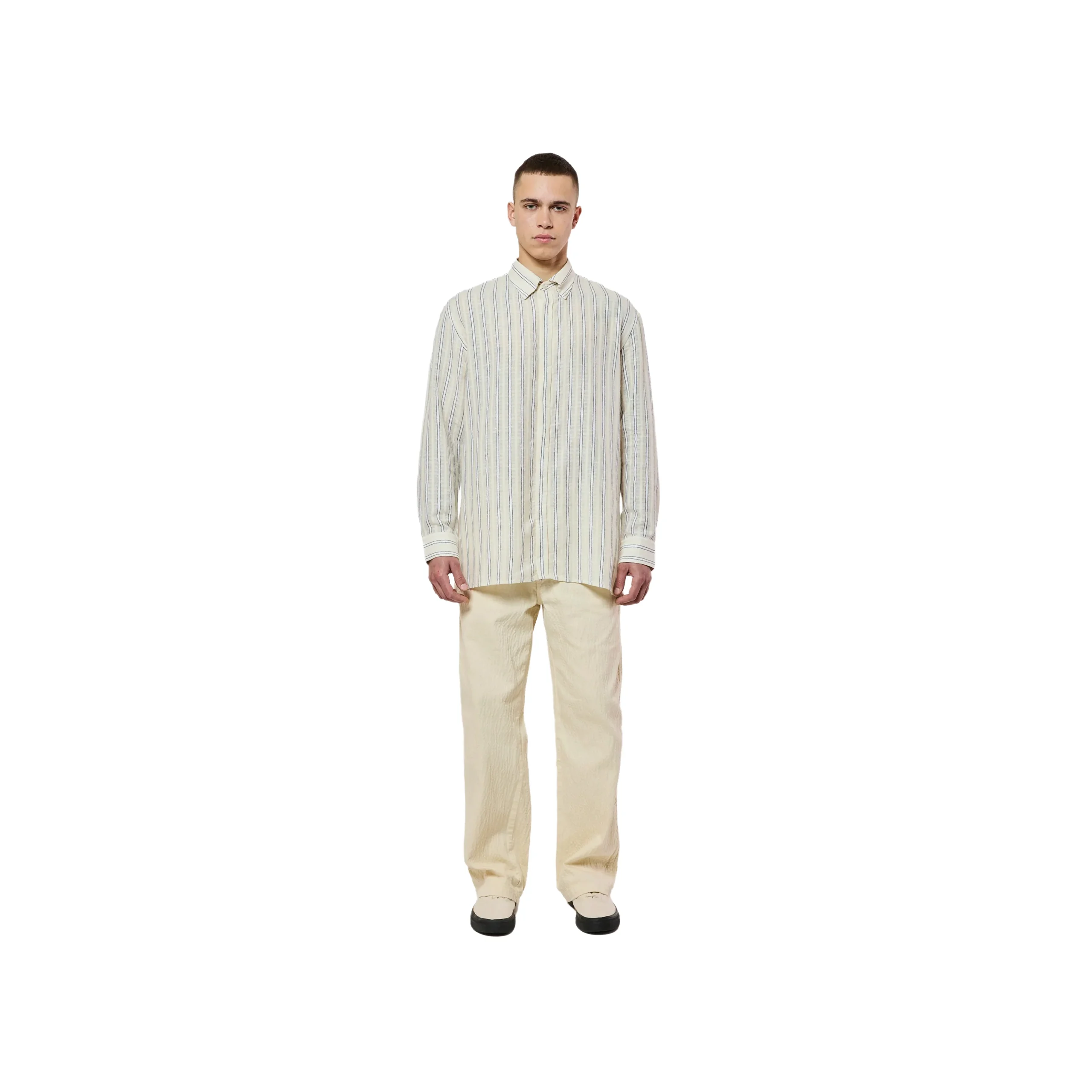 DESCRIPTION : Chemise à manches longues. COMPOSITION : Coupe boxy Boutonnière cachée Empiècement intérieur contrasté Ligne piquée sur la boutonnière ton sur ton Ligne rouge piquée sur la colonne vertébrale 67% Coton 33% Lin Tissu portugais Fabriqué au Portugal LA MARQUE : Alexandre Guarneri fonde avec son ami Steph Cop la première marque de Hip […]