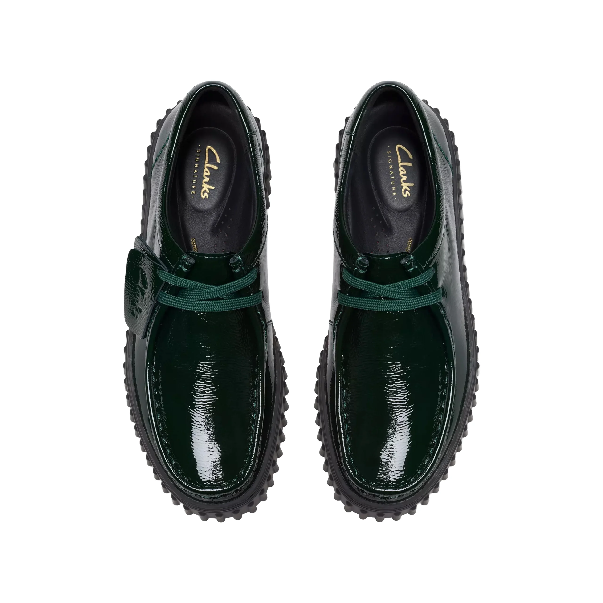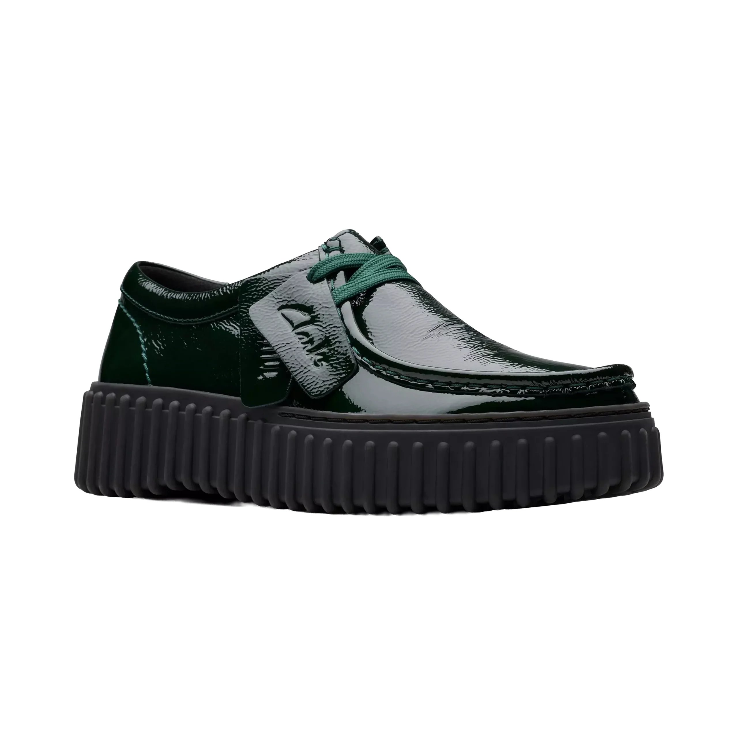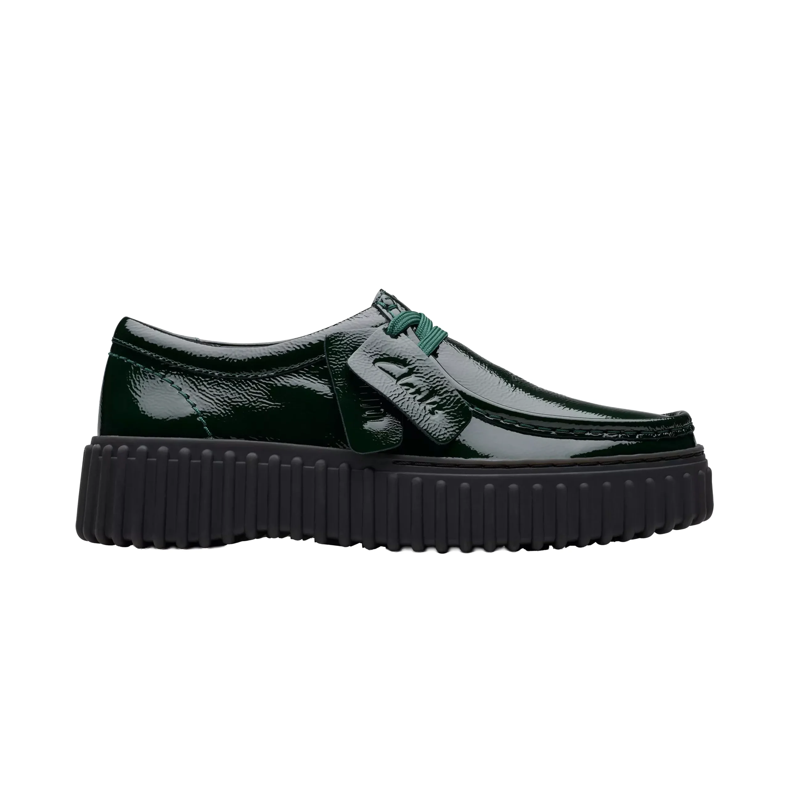 La paire Torhill Bee Verni Vert Verni est un modèle unisexe de chez Clarks Originals, confectionnée en cuir verni premium noir.
